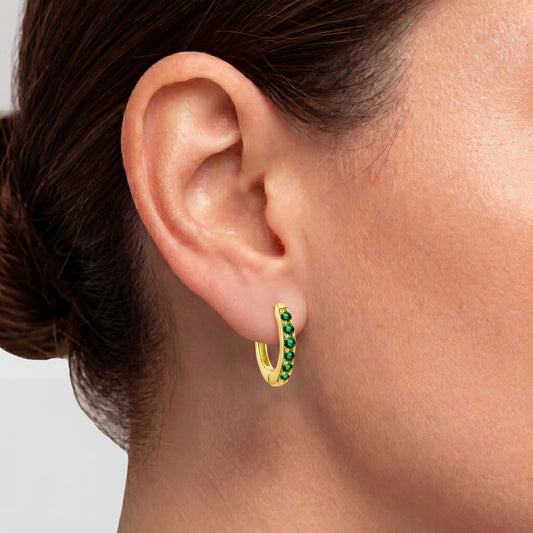 SAVE 100%Gold Emerald Hoop Earrings