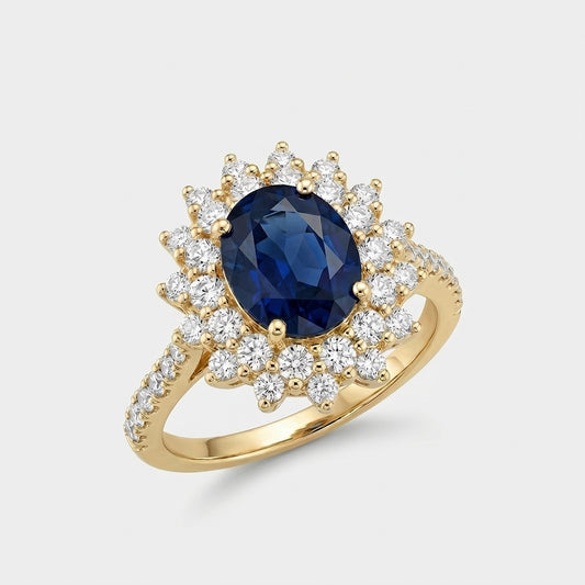SAVE 100%Gold Sapphire Halo Ring
