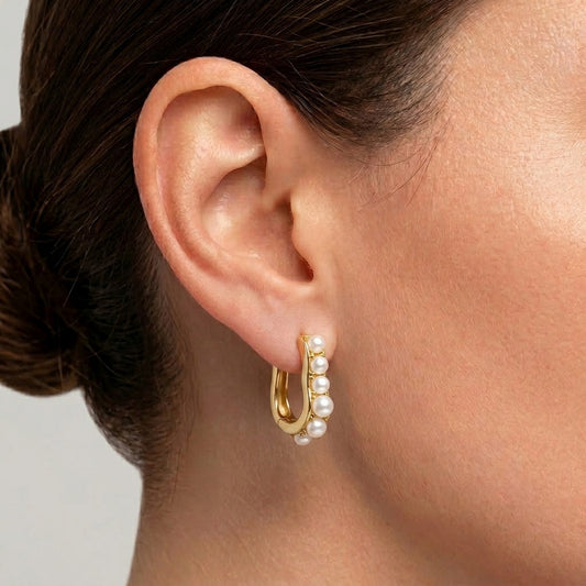 Sold outGold Pearl Hoop Earrings