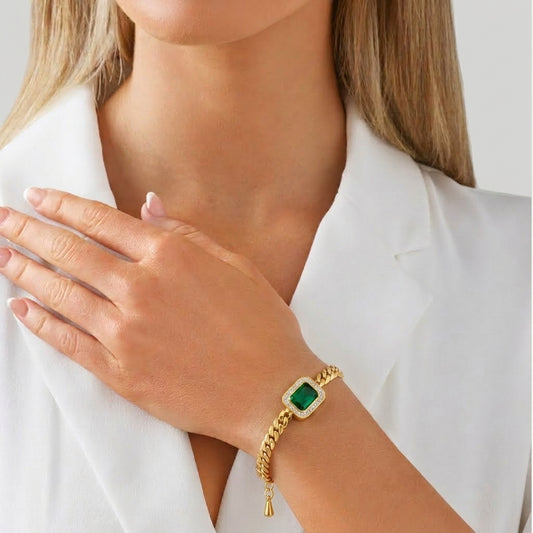 SAVE 100%Gold Emerald Chain Bracelet